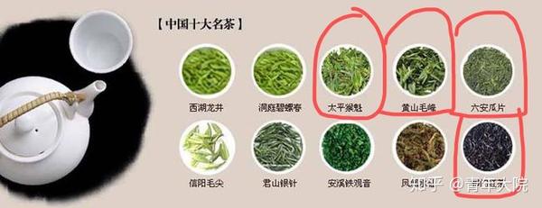 安徽六安瓜片,太平猴魁,黄山毛峰,祁门红茶,占了十大名茶四成